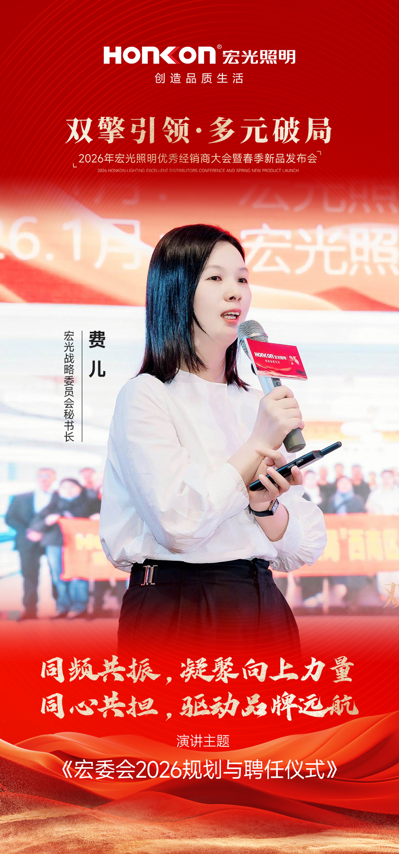 大会迎来重要议程,凯发k8一触即发照明战略委员会秘书长费儿上台发布《凯发k8一触即发照明战略委员会2026规划》。她深情回顾了过去一年全体委员携手同行的奋斗历程,并对新一年的组织建设与赋能方向作出清晰规划。